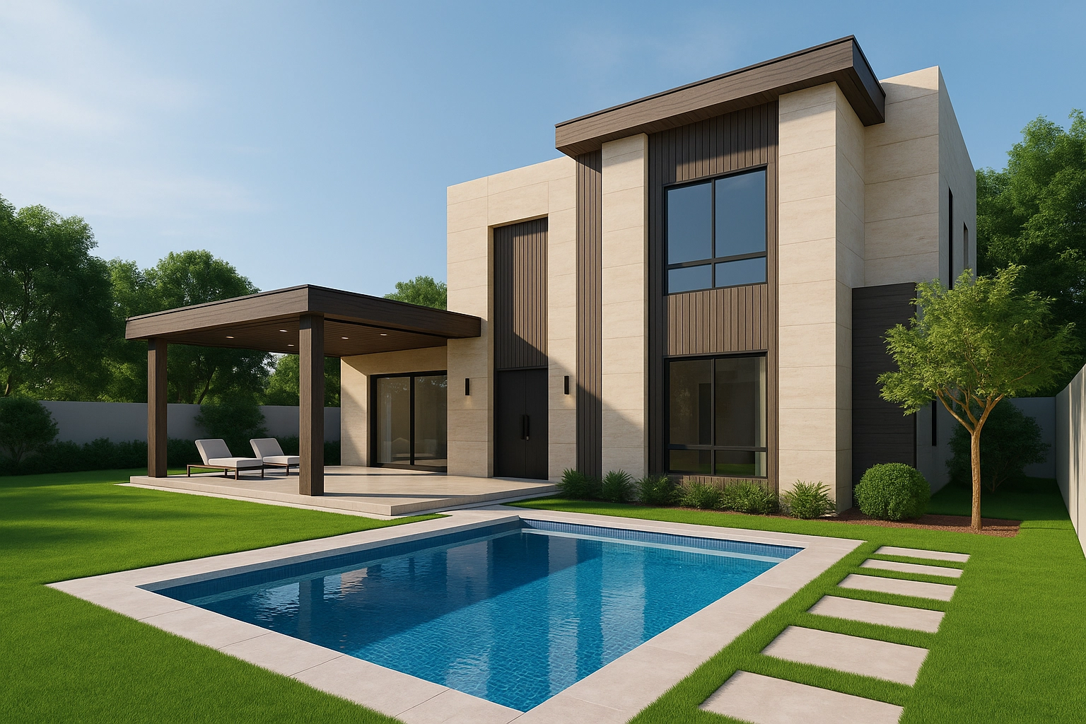 تصميم وتنفيذ واجهات خارجية، مظلات وسواتر، بديل خشب وتكسيات حجرية، لإضفاء طابع فاخر ومتين على المباني والفلل